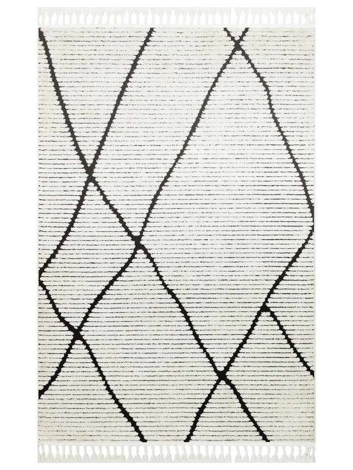 Tabasco Series Ethnic Patterned Living Room Hallway Corridor Modern Scandinavian Carpet 07 WHITE BLACK