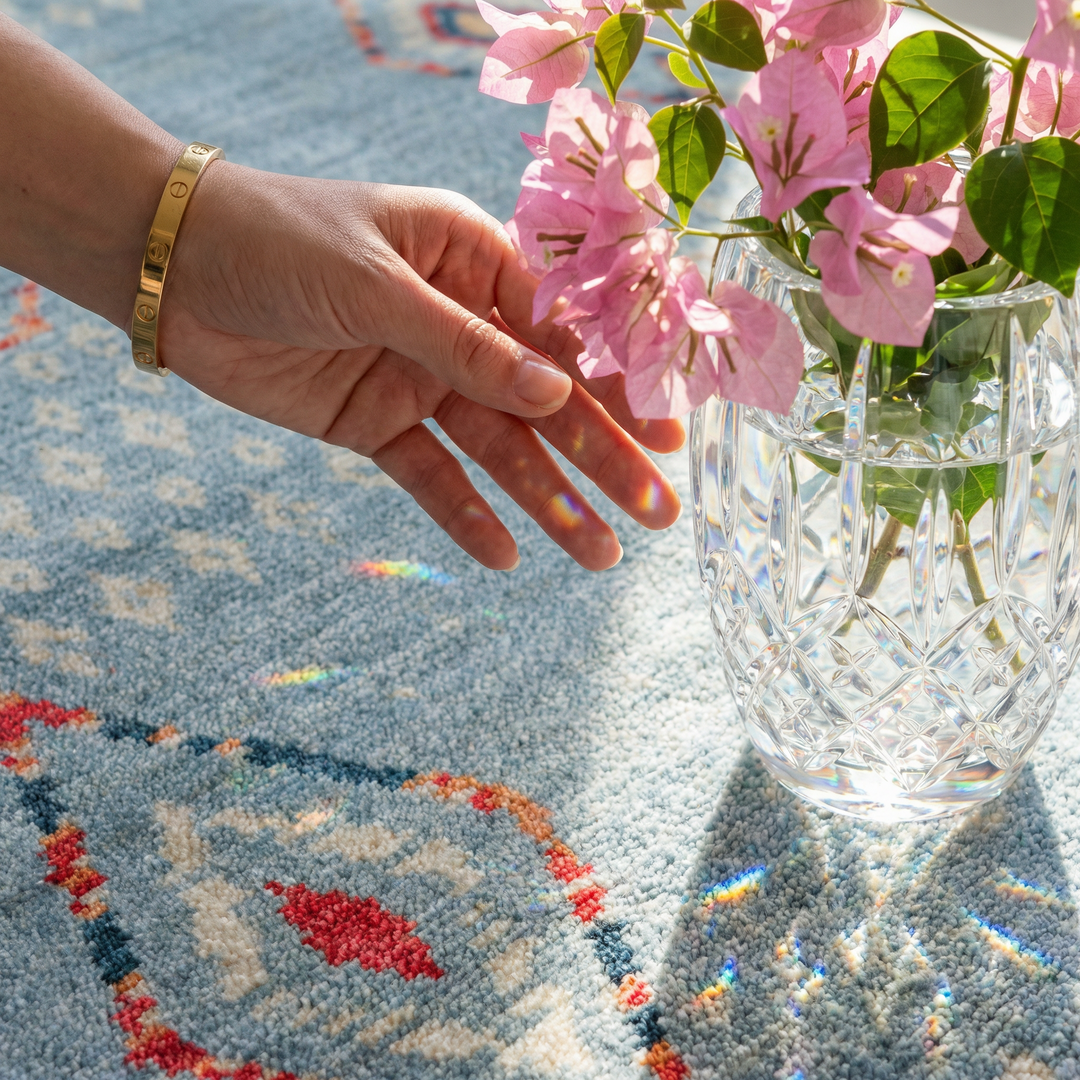 Noble textures such as handwoven, TENCEL™, viscose, and New Zealand wool should not come into contact with household chemical cleaners. Such products can irreversibly damage the carpet’s silky shine and structural integrity. For deep cleansing, support should be sought only from professional carpet care centers specialized in natural fibers.
