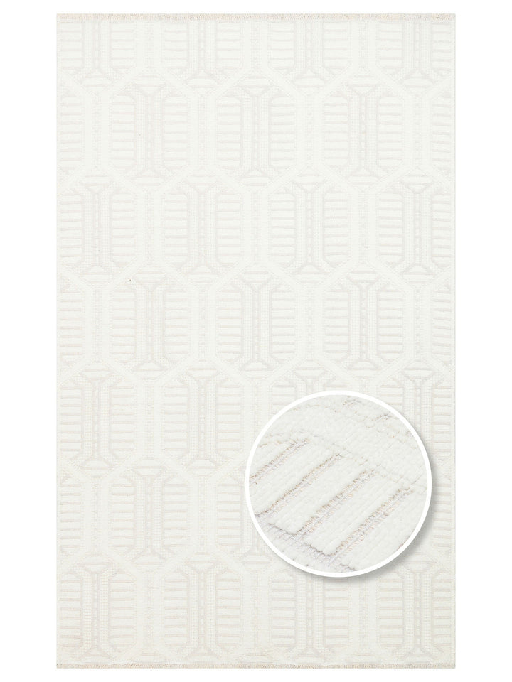 Lino Serisi Mutfak Oturma Odası Salon Antre Koridor Yıkanabilir Kaymaz Taban Pamuklu Kilim 03 CREAM - Carpetdocia